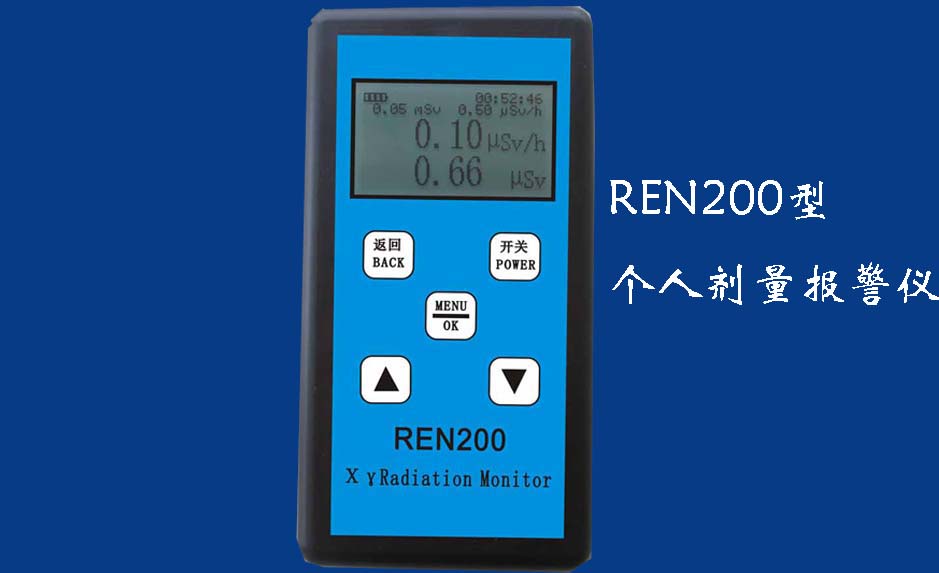 REN200A型X、γ輻射個人劑量當量HP(10)監測儀(簡稱:個人劑量報警儀)內置高靈敏度蓋格計數管為探測器,主要用來監測各種放射性工作場所的X、γ以及硬β射線的輻射,具有響應快,測量范圍寬的特點。能顯示工作場所的劑量當量率和累積劑量,更換電池時,日期及累積數據能永久保存?蛇x配RenRiPersonal個人劑量管理軟件,該軟件可存儲多個人的歷史數據,能記錄日累積、月累積、年累積、輻照時長、計算平均劑量率、扣除或不扣除本底輻射,且以文字和圖譜的方式展現數據。廣泛應用于核電站、加速器、鋼鐵、化工、同位素應用、工業X、γ無損探傷、放射醫療、鈷源治療、γ輻照、放射性實驗室、核設施周圍環境監測等領域中的